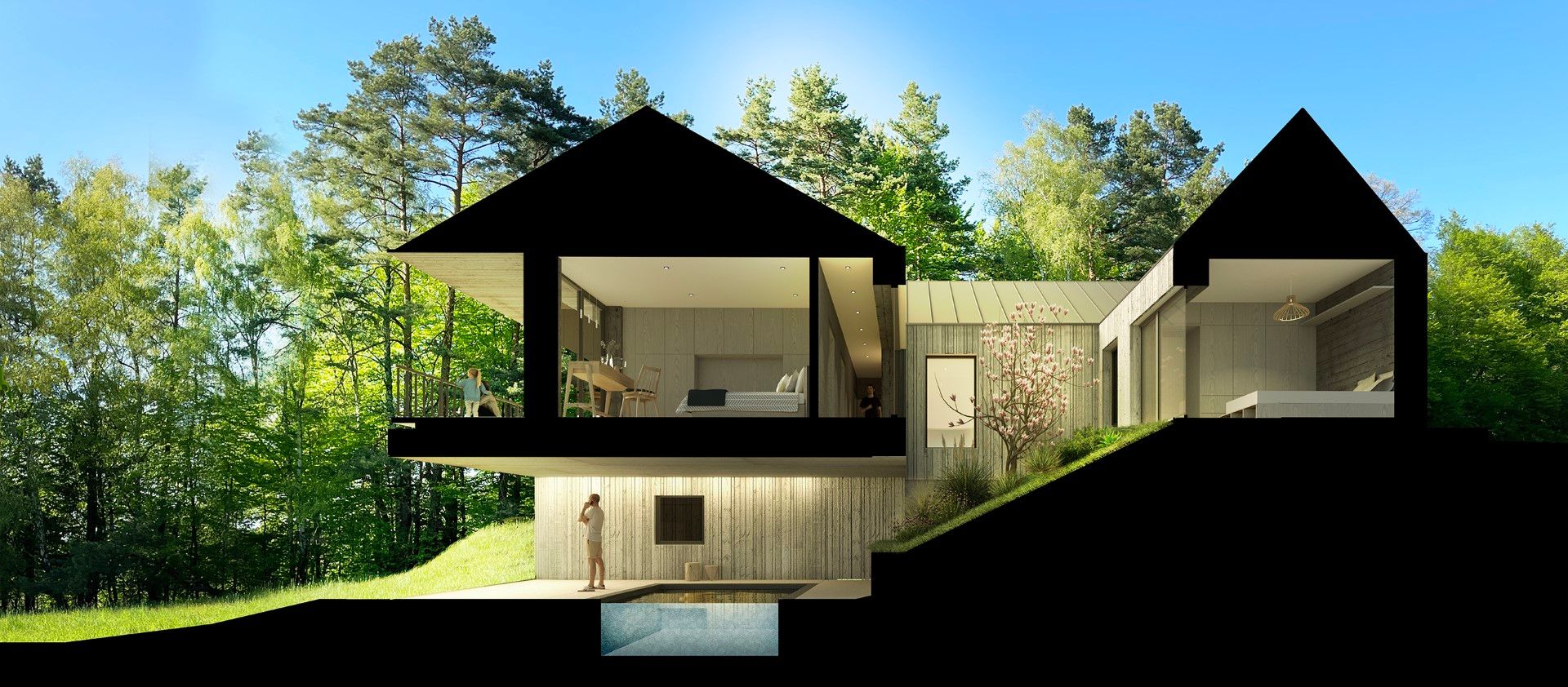 W.Ś: W punkcie wyjścia jest to ta sama metoda, może to kwestia ugruntowanej i sprawdzonej drogi postępowania, żeby być zadowolonym z efektu, by przebadać wszelkie okoliczności, jakie każdej działce i każdej sytuacji towarzyszą – nie ważne, czy to jest u kogoś, czy u nas. Więc jeżeli chodzi o myślenie nad projektem, myślenie koncepcyjne, to nie widzę tutaj żadnej różnicy, ponieważ nadal mamy jakieś terytorium, które ma swoje cechy, swoje zalety – mniej lub bardziej ujawnione, słabe punkty czy wyzwania. Dalej jest klient, no cóż, w tym wypadku o kliencie wiemy najwięcej, co niekoniecznie musi być ułatwieniem. Natomiast zasadniczą różnicą jest to wszystko, co dzieje się później, czyli już na etapie budowy, kiedy absolutnie wszystko jest już nasze, wszelkie obciążenia i niepewności – w kwestii podejmowanych decyzji, ich konsekwencjach użytkowych i finansowych. Tak często nie bywa się na żadnej budowie, w związku z tym ilość rozważanych spraw, przewidywanych scenariuszy, powoduje, że są momenty, kiedy ciężar tej materii odczuwamy dobitnie.