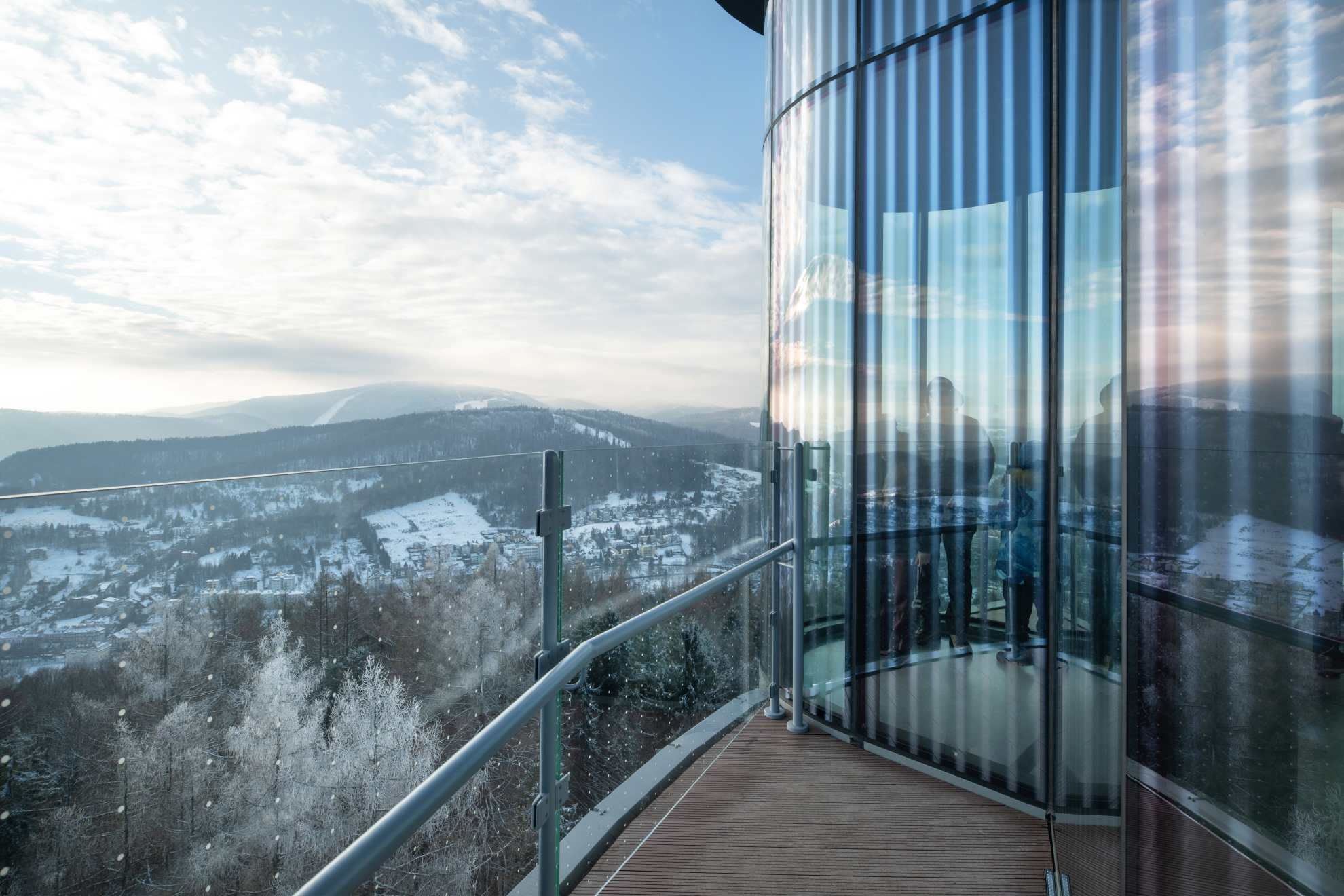 Nowa wieża widokowa na Górze Parkowej w Krynicy-Zdroju to inwestycja, która szybko stała się jedną z najbardziej charakterystycznych atrakcji regionu. Obiekt o wysokości 36 metrów nie tylko porządkuje przestrzeń turystyczną wzniesienia, lecz także wyznacza wysoki standard w zakresie projektowania i wykonania przeszklonych konstrukcji użytkowych. W realizacji istotną rolę odegrały rozwiązania stolarki aluminiowo-szklanej dostarczone przez WIŚNIOWSKI, które pozwoliły połączyć wymagania estetyczne, użytkowe i środowiskowe.