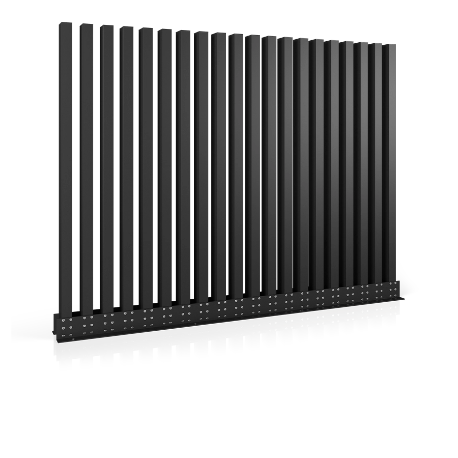 Możliwość montażu na podmurówce betonowej lub poniżej linii gruntu - dla unikalnego efektu. INFINITY tworzy nieprzerwaną linię segmentów bez słupów ogrodzeniowych.