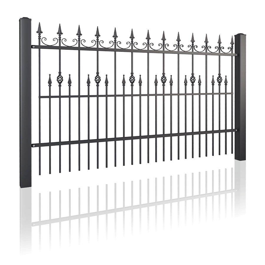 Stalowe pręty o przekroju 14x14 [mm], składające się na wypełnienie elementów z tej kolekcji, nadają konstrukcji wyjątkowej lekkości. W zależności od wzoru, górna krawędź ogrodzenia może być zakończona łukiem wypukłym, wklęsłym lub prosto. Zwróć uwagę na wersję przekoszoną, jeśli jesteś właścicielem działki o dużych różnicach wysokości.