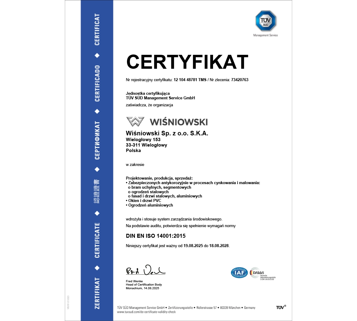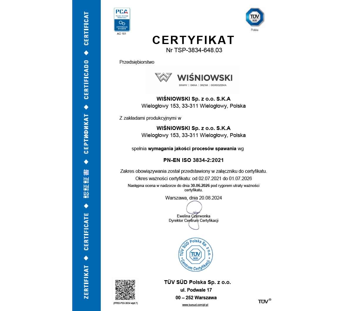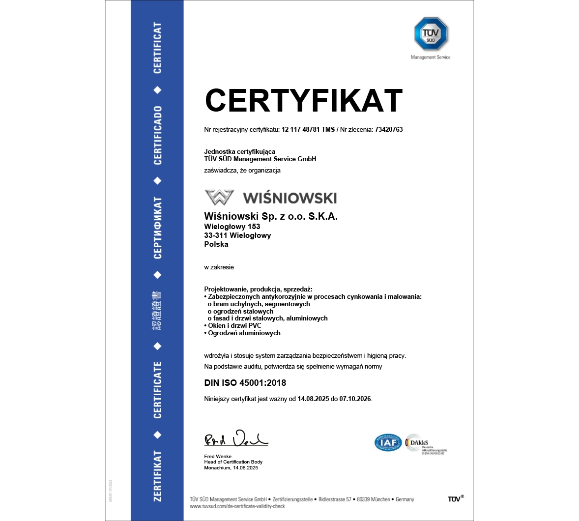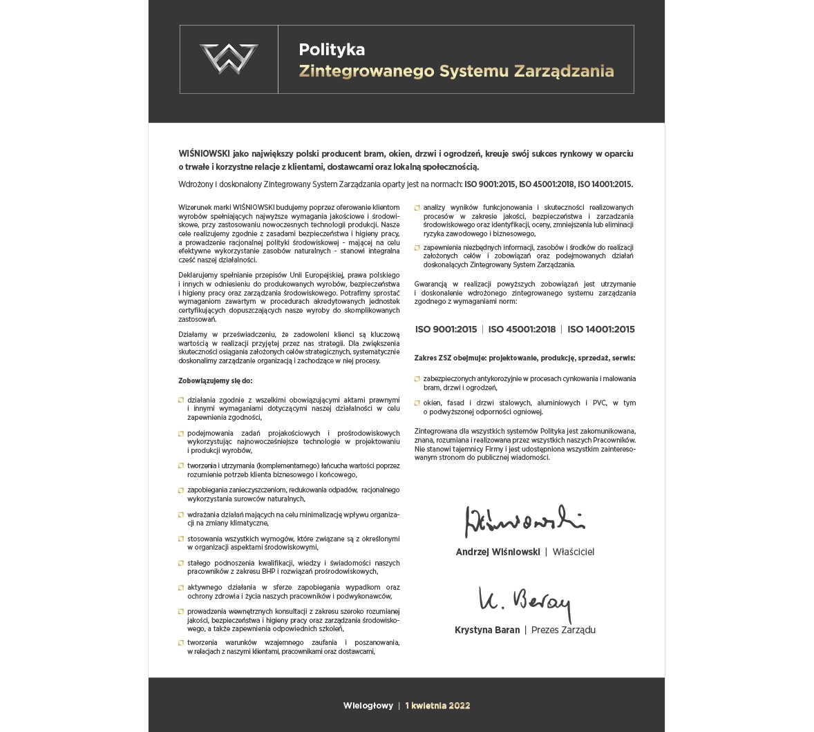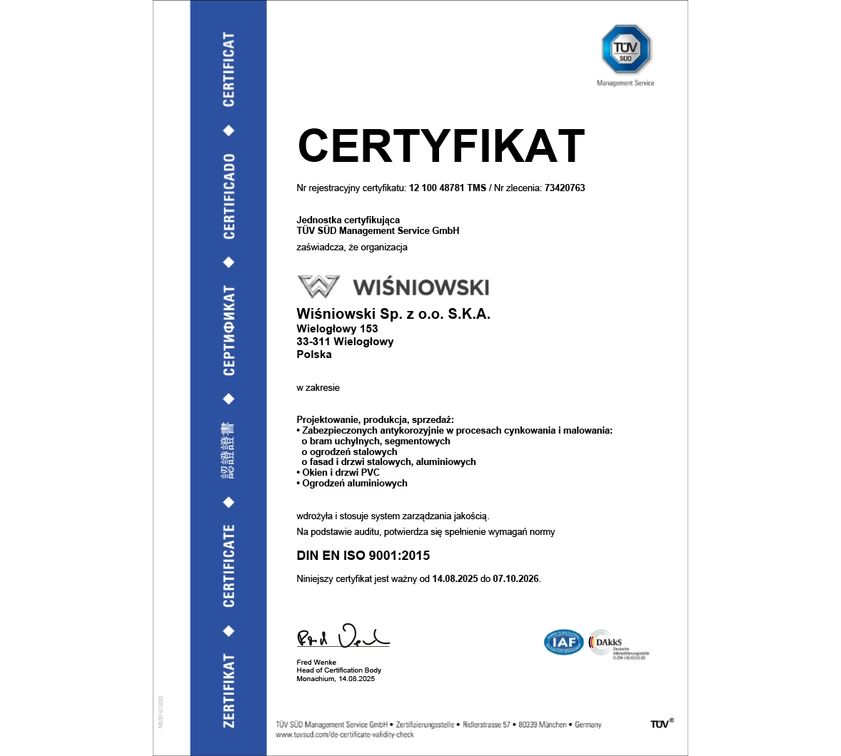WIŚNIOWSKI dziś to trzy autonomiczne fabryki bram garażowych, okien i drzwi oraz ogrodzeń, a także nowoczesny biurowiec i - wzorowany na rozwiązaniach znanych z portów lotniczych - check-in.